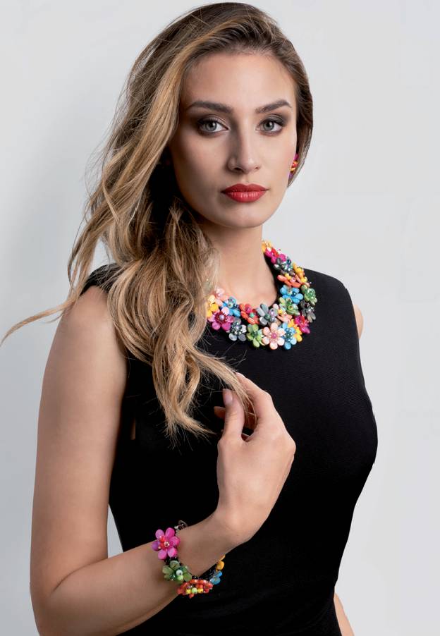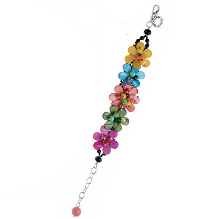 Bracciale da donna della marca Ottaviani. Il bracciale è realizzata interamente a mano con una struttura sottostante alle pietre che gli permettono di restare semirigida al polso. Interamente lavorato a mano dai colori vivaci e misti con fiori in madreperla e pietre dure al centro da realizzare un effetto multicolor brillante e adatto a qualsiasi outfit. Il gioiello si può acquistare in coordinato con l'intera parure. Chiusura regolabile con longhina ad anellini e maglia moschettone. Lunghezza del bracciale cm 14 regolabile fino a 18 cm.