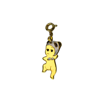 Ciondolo da ragazza o da Donna prodotto da Re Mida e realizzato artigianalmente dai nostri laboratori. Il pendente è fatto in lastra d'Argento 925 con Laminatura in Oro 18 KT, rappresente il pupazzetto più virale del momento, il Sonny Angels, un piccolo angelo con un simpatico cappello a forma di panda, è arrichito da smalto bianco e nero. La lunghezza di 3 cm. La chiusura è con gancio a molla per dare la possibiltà di agganciarlo dove si vuole, vicino ad una collana o anche ad un bracciale oppure vicino ad un portachiavi.