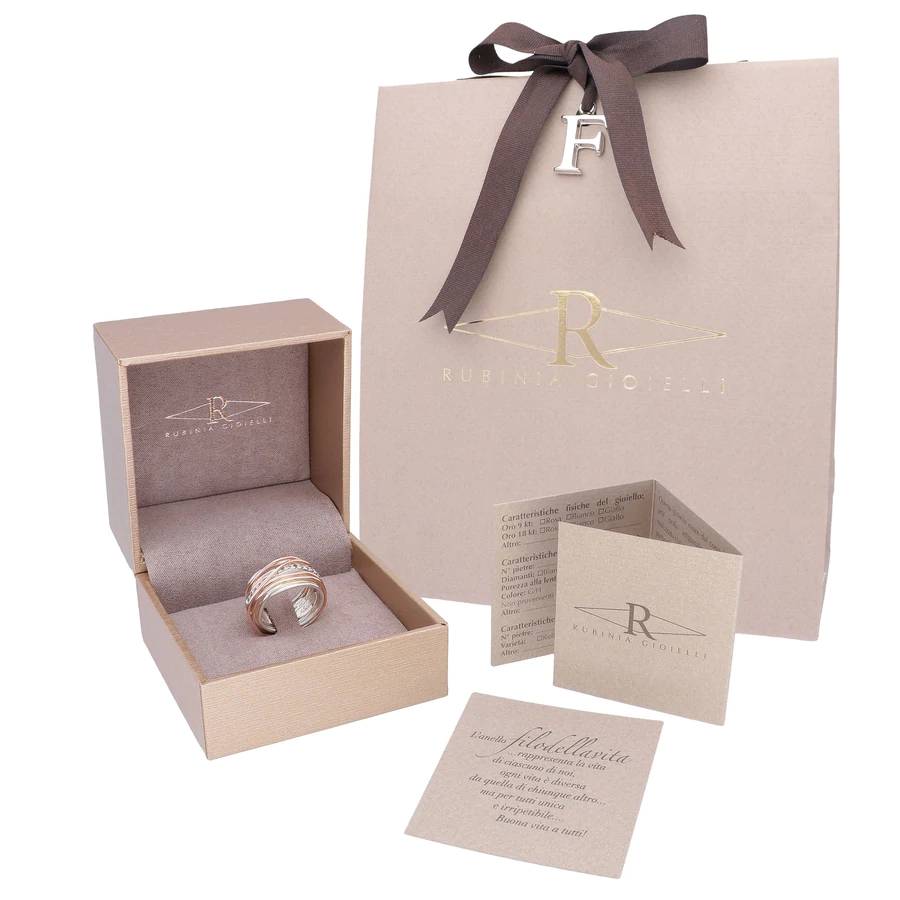 Anello Filodellavita Classic Collection in argento con doppia riviera 16 diamanti bianchi 0,21ct+16 diamanti brown 0.21 ct