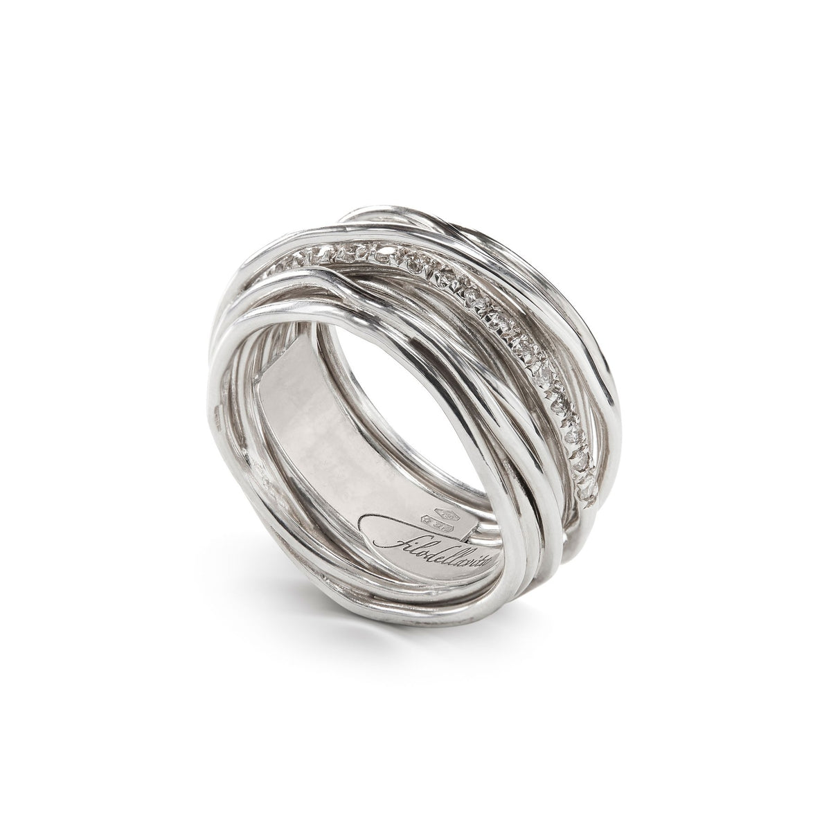 Anello Donna Filo della Vita 13 Fili Aregnto Diamanti Bianchi 0.21 CT. Mis 17