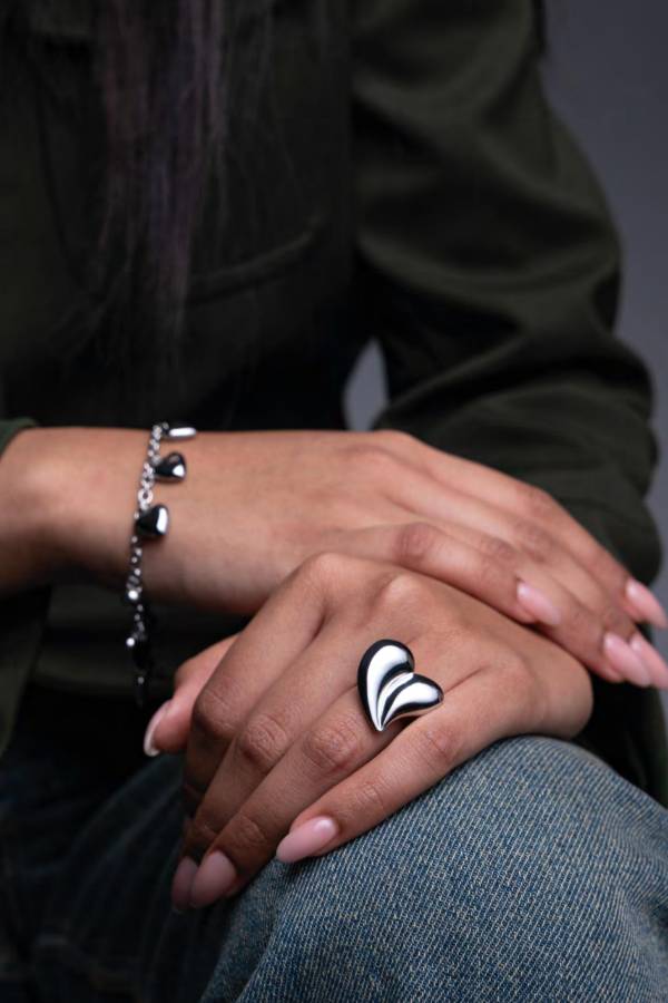 Anello realizzato in acciaio inossidabile. Anello a cuore in acciaio lucido. L'anello è regolabile dalla misura 12 alla 20.