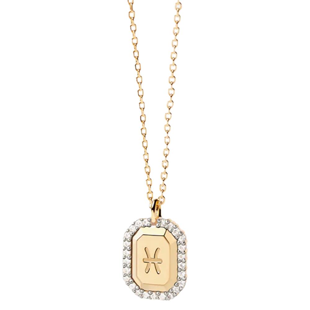 Collana PDPaola Segno astrologico dei Pesci inciso su ciondolo in argento placcato oro.