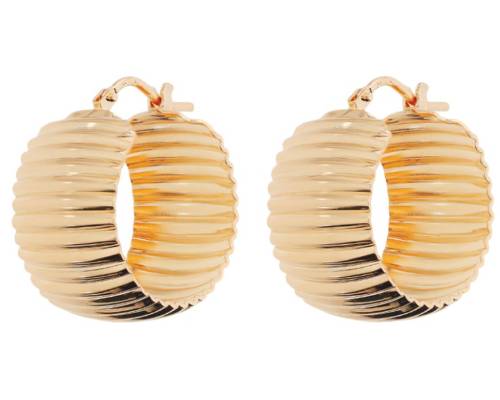 Orecchini da Donna della Marca Etrusca. Orecchini Etrusca Gioielli realizzati in lega Golden, dal design a cerchio dalla texture rigata, finitura lucida. Chiusura a baionetta.