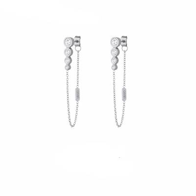 Orecchini da Donna della marca Liu Jo, il gioiello è realizzato in Acciaio color silver, con catena pendente con zirconi bianchi che si agganciano alla chiusura. La lunghezza è di 5 cm. La chiusura a farfalla.