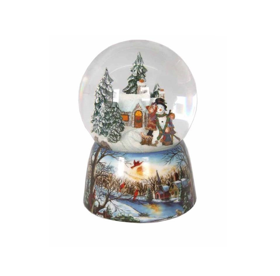 Scultura Decorativa fatta dall'azienda Il Mondo Dei Carillion. La scultura è realizzata artigianalmente, la Palla di neve Sfera in porcellana scena che fanno il pupazzo di neve . Per azionare il carillion si deve caricare il meccanismo musicale facendo  girare in senso orario la vite posta alla base della scultura stessa così inizierà a muoversi al suono di “Winter Wonderland”. Misure: Ø10x14,5 cm.