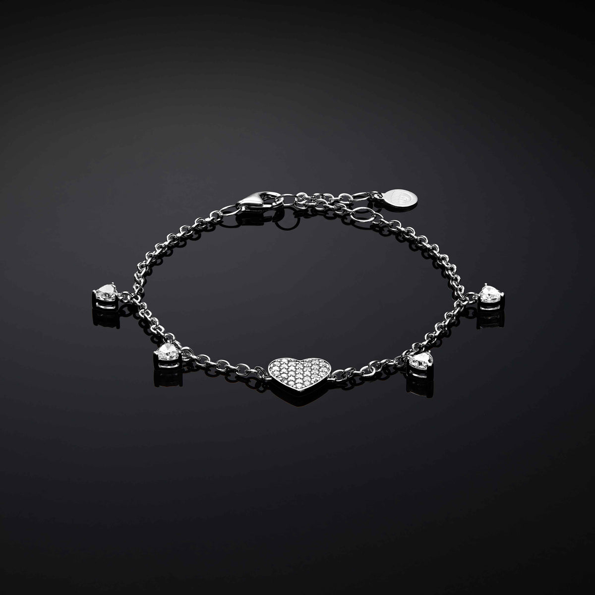 Bracciale da Donna della marca Chiara Ferragni. Il gioiello è realizzato in Argento 925 a forma di cuore con piccoli cuoricini zinrconati.