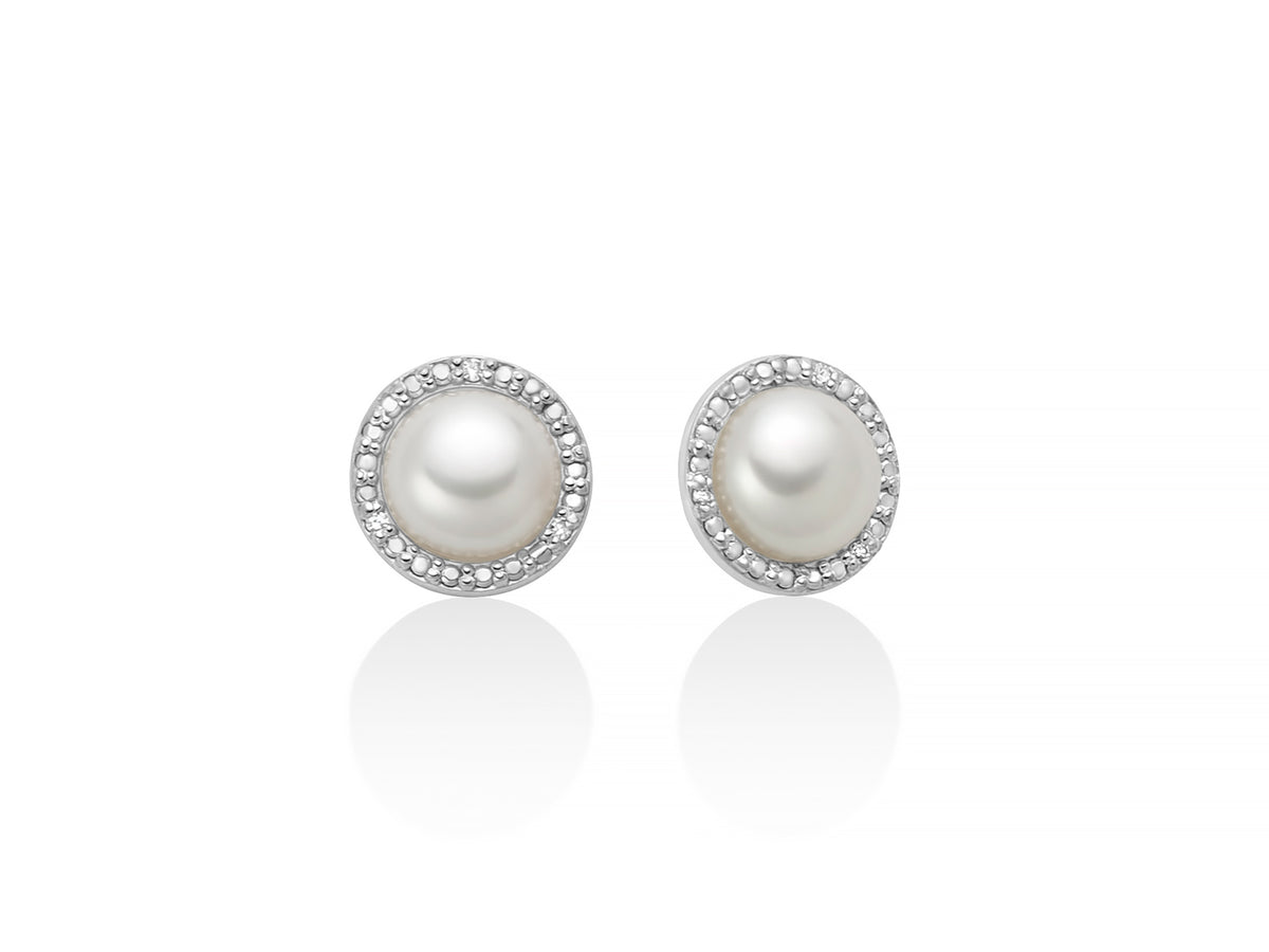 Orecchini Donna Miluna Oro Bianco 9kt Perla 6,5-7 mm e Diamanti PER2856X