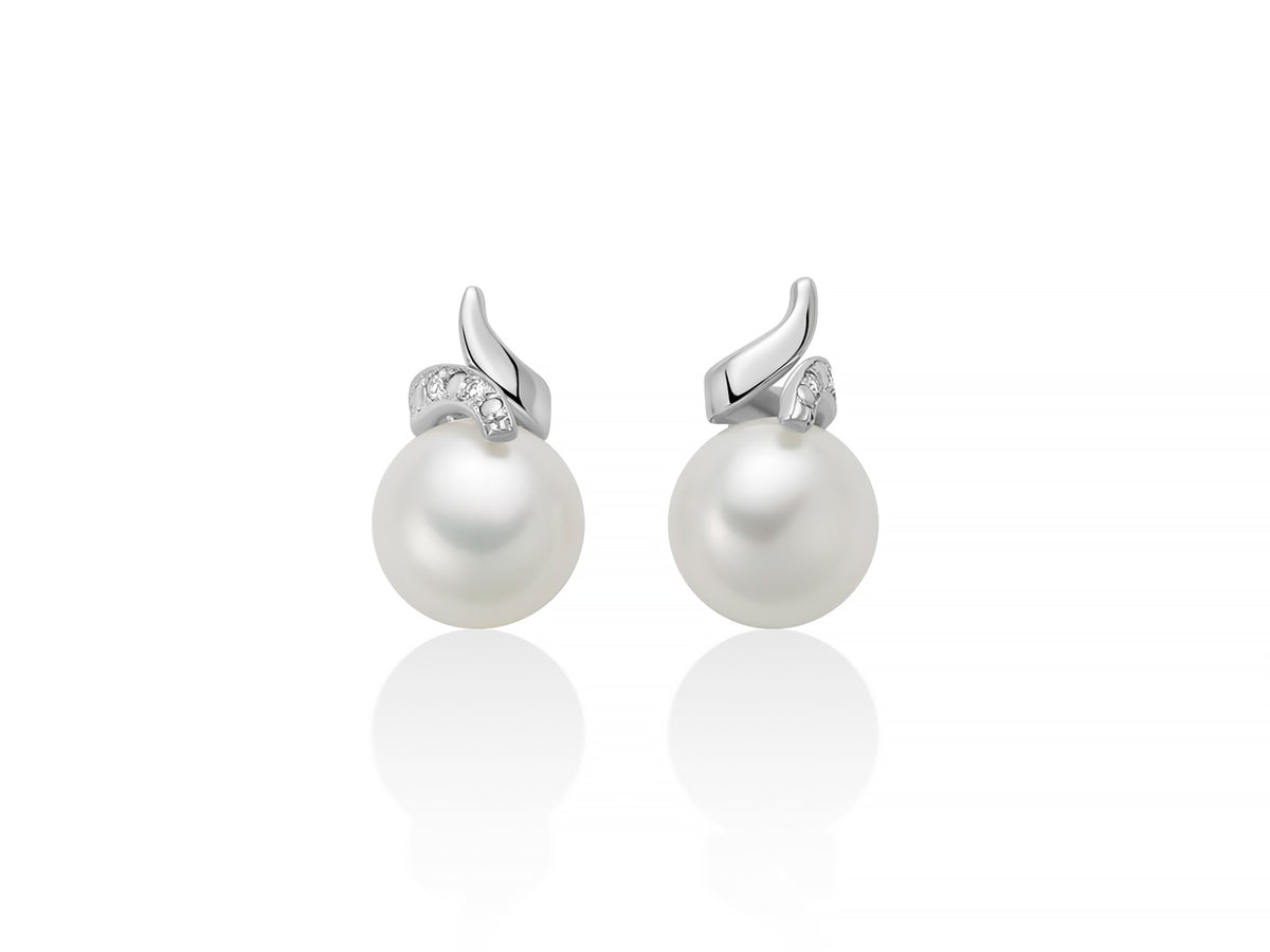 Orecchini Donna Miluna Oro Bianco 9kt Perla 7,5-8 mm e Diamanti PER2852X