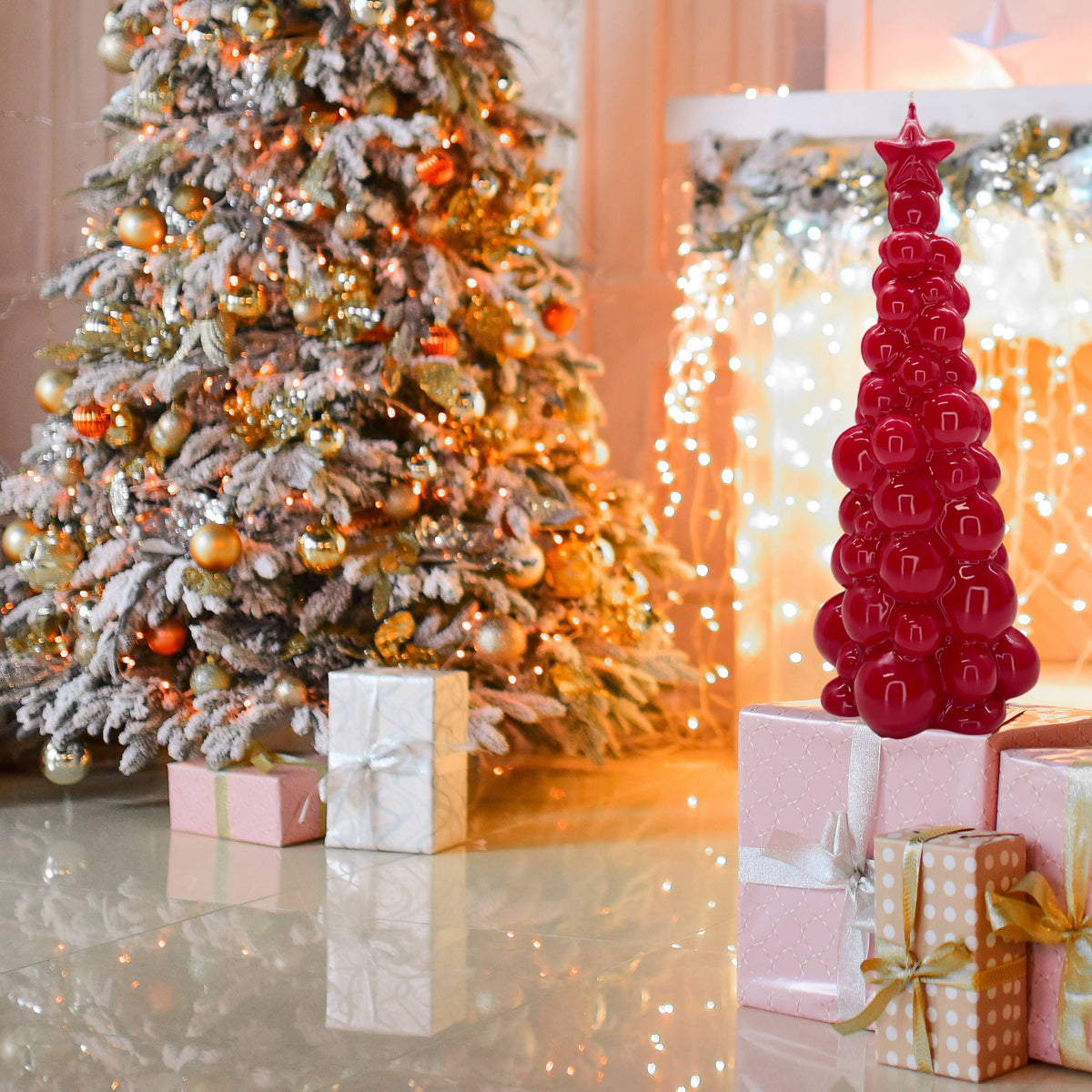 Graziani è una linea di candele particolari adatte in ogni festività. La collezione Alberi Mosca rappresenta il tradizionale albero di natale adornato per le feste. La candela è di colore rosso. Altezza totale è di 21cm.