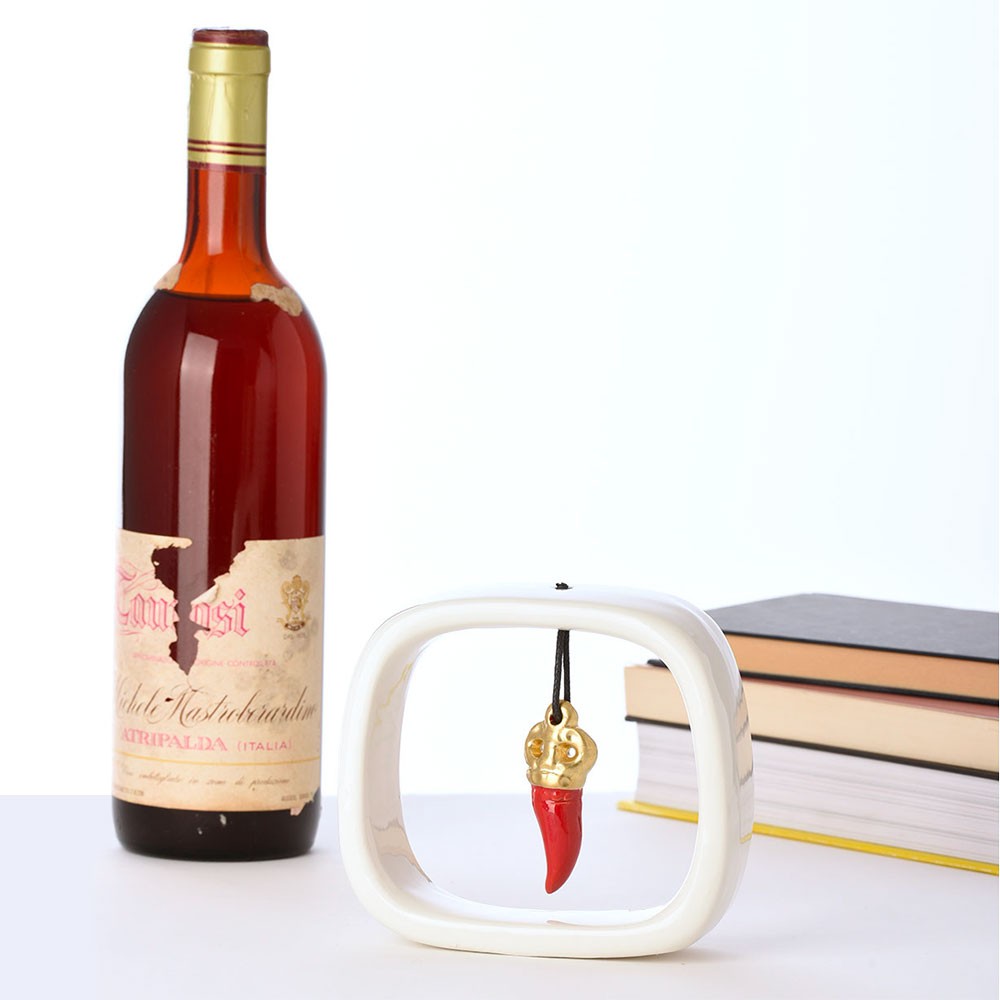 Corno Portafortuna Rosso Cornice Bianca Ceramica Macrì TE080