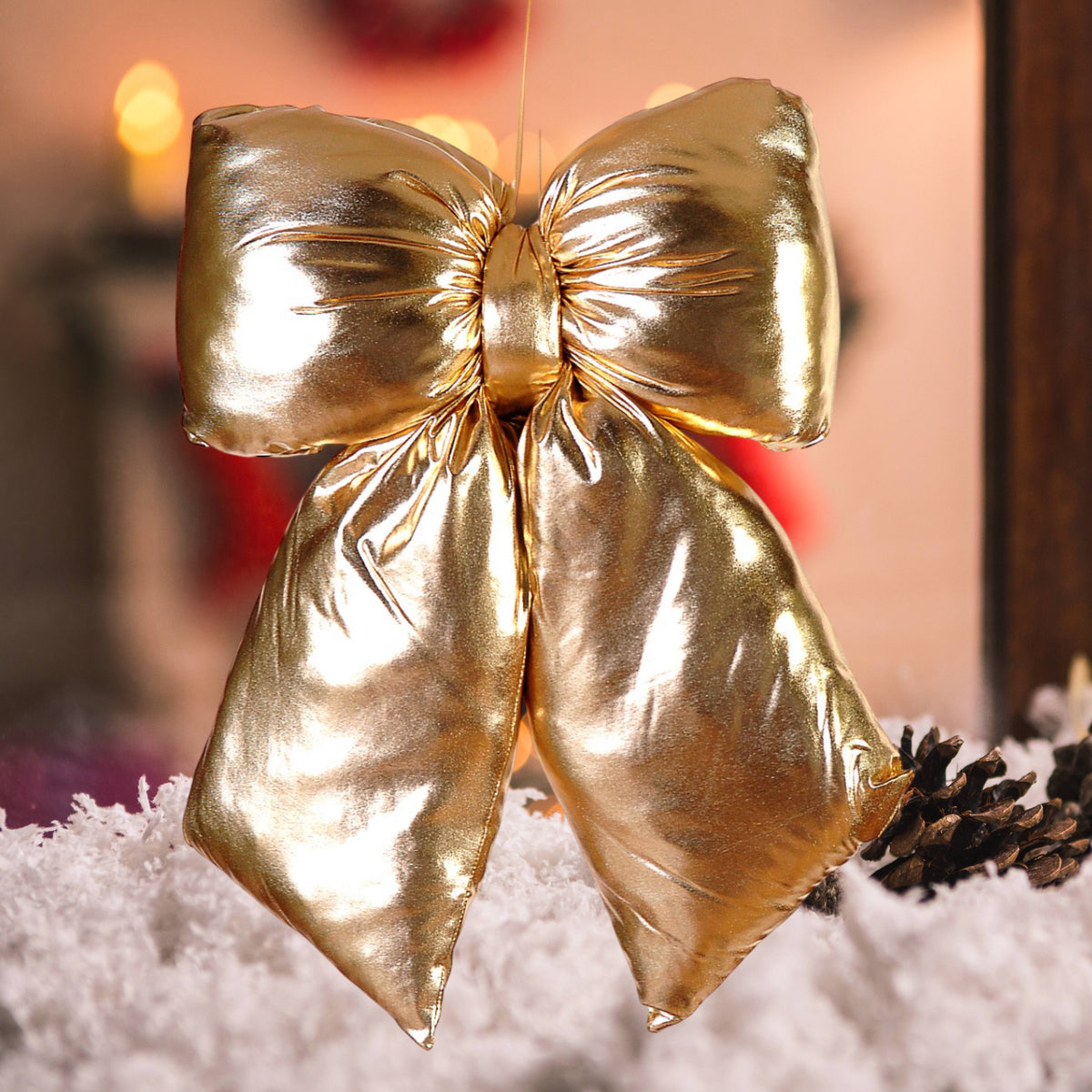 Questo bellissimo Fiocco saprà impreziosire la vostra casa nelle festività natalizie. I dettagli sono fantastici. Il Fiocco è realizzato in tessuto nella tonalità dell'oro. L'altezza totale è di 36 cm.