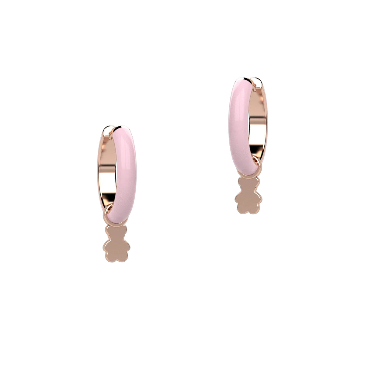 Orecchini Da Donna E Bambina Di Nanan Della Collezione Nanàn Bijou. Orecchini In Argento Rosè 925 A Forma Di Cerchio Smaltato Rosa Con Orsetto Pendente Di Colore Rosè, Chiusura A Clip. La Referenza È Nan0321