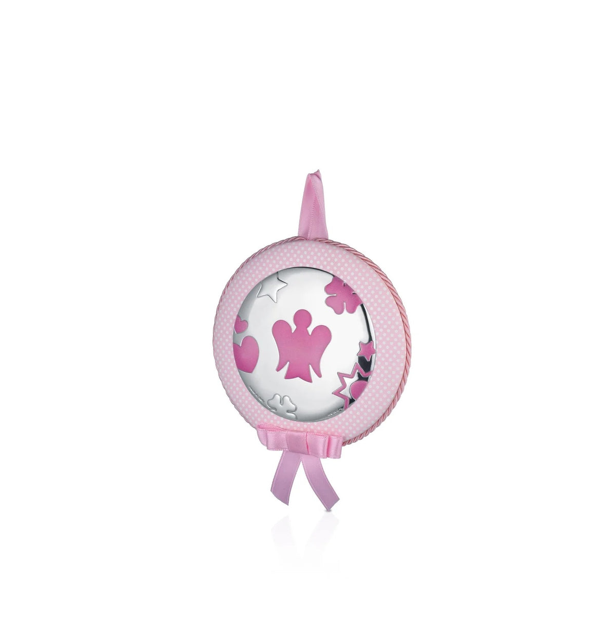 CAPOCULLA IN ARGENTO E SIMILPELLE CON CARILLON IN ROSA