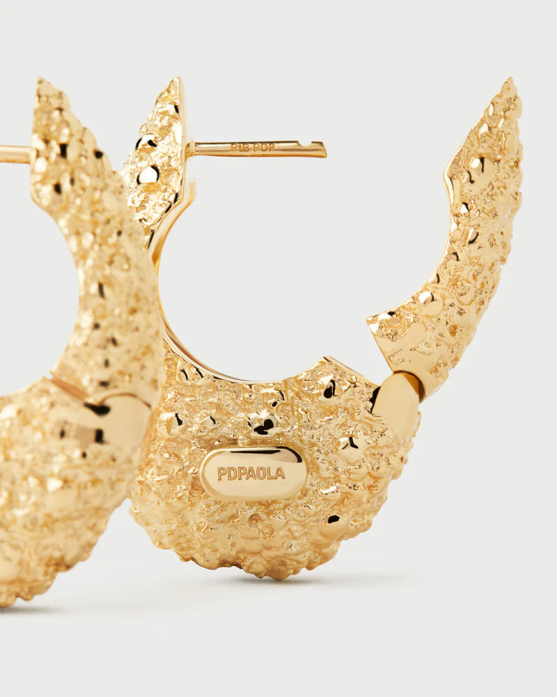 Orecchini da Donna prodotti da PDPaola e realizzato attraverso processi artigianali. La coppia per i lobi è fatta in Argento 925 con lavorazione in bagno di galvanica in Oro 18 KT, composto da due goccie mediamente grandi e una lavorazione a boule molto particolare. L'orecchino ha una lunghezza di 3 cm. La chiusura è con perno a scatto.