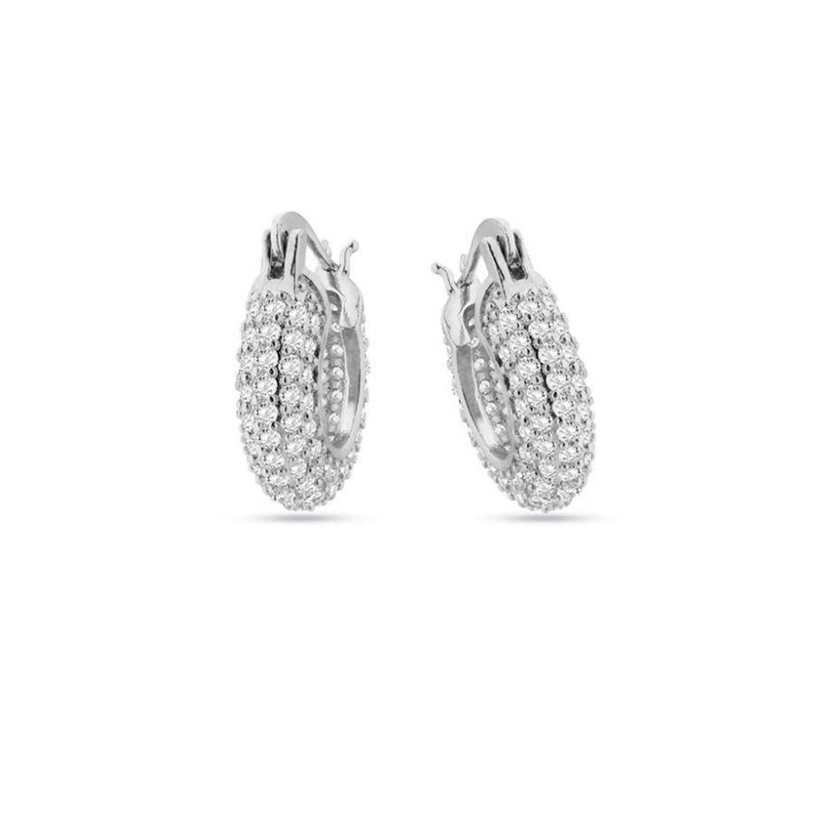 Orecchini da Donna della marca Liu Jo, il gioiello è realizzato in Acciaio, raffigura una coppia di cerchi con zirconi bianchi incastonati. La lunghezza è di 1,8 cm. La chiusura è a forchetta, a incastro.