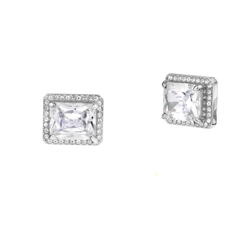 Orecchini da Donna della marca Liu Jo, il gioiello è realizzato in acciaio , raffigura un punto luce con la forma rettangolare con zirconi bianchi incastonati. Il diametro è di 2 cm. La chiusura è con vitarella.