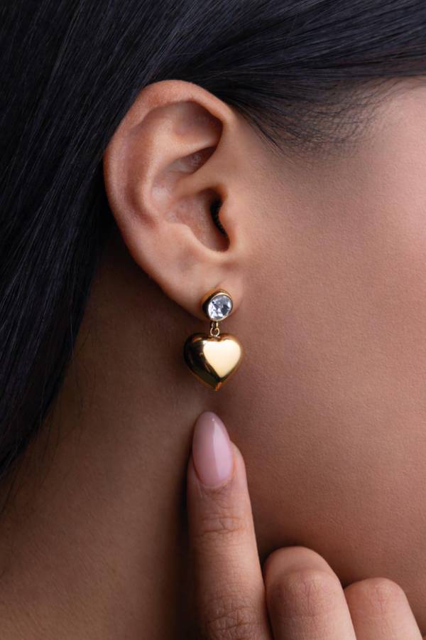 Orecchini da Donna della marca 4US Cesare Paciotti. Gli orecchini sono realizzati in acciaio inossidabile. Gli orecchini pendenti a cuore con zircone bianco. La lunghezza è di 1,5 cm. La chiusura è a farfallina.