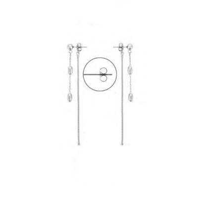 Orecchini da Donna della marca 4US Cesare Paciotti. Gli orecchini sono realizzati in acciaio inossidabile. Gli orecchini pendenti a lobo e sulla vite con sfere in acciaio lucido. La lunghezza è di 4 cm e 7,5 cm. La chiusura è a farfallina.
