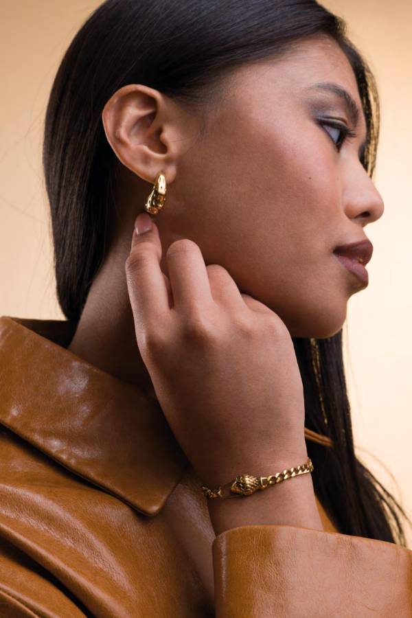 Orecchini da Donna della marca 4US Cesare Paciotti. Gli orecchini sono realizzati in acciaio inossidabile con finitura PVD oro. Gli orecchini a lobo a semicerchio traforato. La lunghezza è di 2,2 cm. La chiusura è a farfallina.