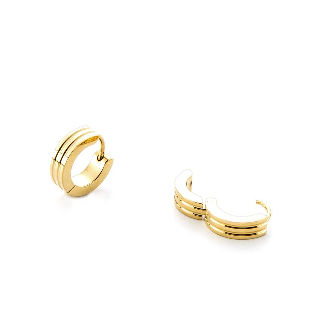Orecchini Unisexdella marca 4US di Cesare Paciotti, il gioiello è realizzato in acciaio dorato. Modello cerchio come in foto. Chiusura a scatto.