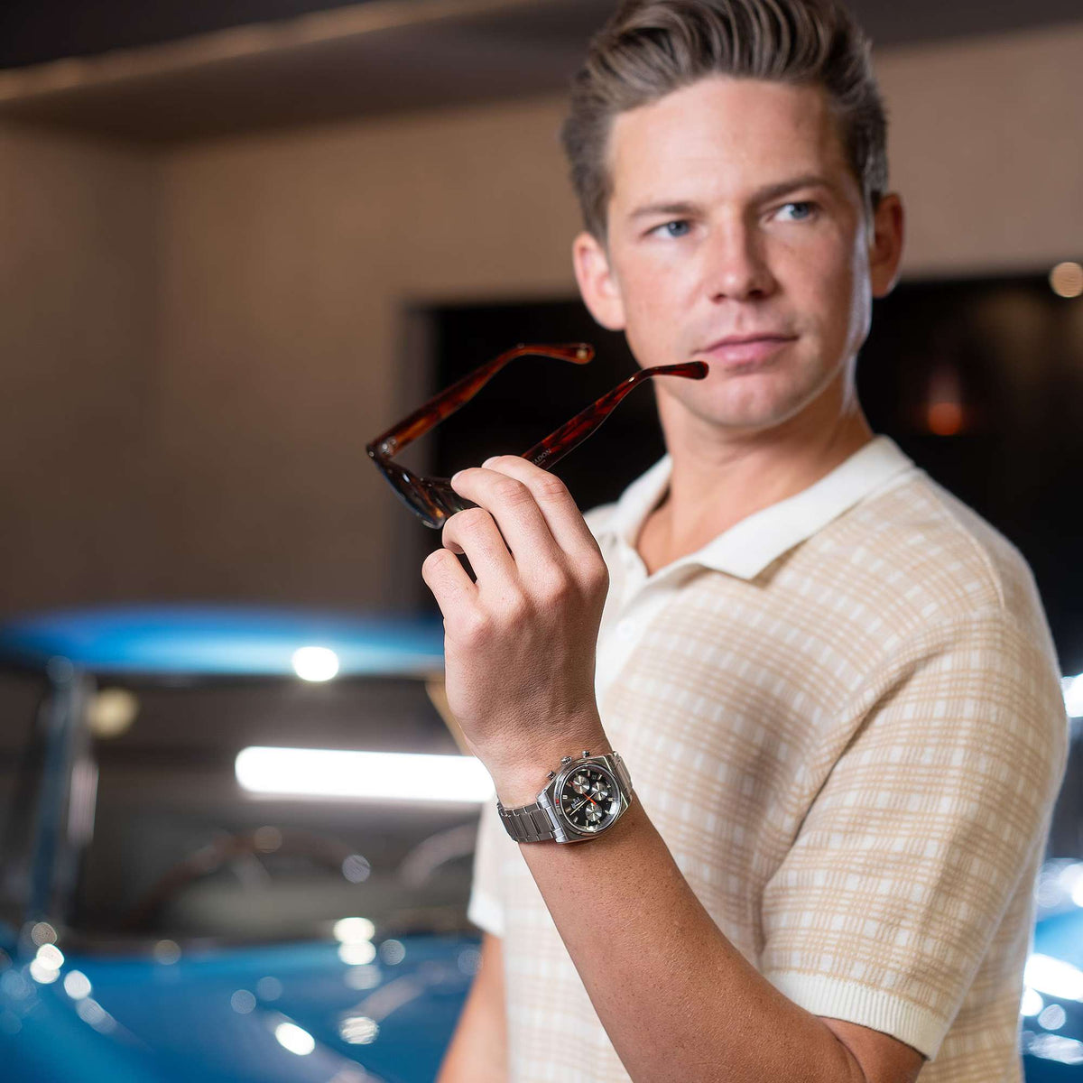 Orologio Uomo della marca Casio modello EDIFICE, il cronografo ha un meccanismo al Quarzo e Datario ad ore 4, la cassa misura 40 mm di diametro, il quadrante è colore nero con lancette in acciaio ed indici a barre lavorate con il trizio per vedere l'orario anche al buio, il cinturino è in acciaio con maglia a 3 elementi con lavorazione lucida e satinata, il vetro è minerale piano antigraffio, la corona è a trascinamento, la resistenza all'acqua è di 10 atm.