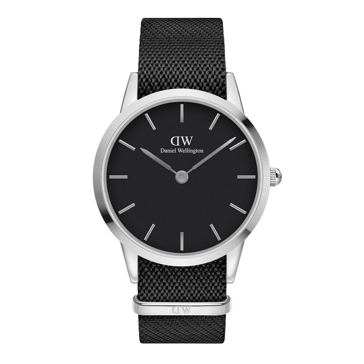 Orologio da Uomo della marca Daniel Wellington. Il segnatempo ha un meccanismo al quarzo solo tempo, la cassa rettangolare misura 40 mm in acciaio lucido, il quadrante è di colore nero con lancette ed indici in acciaio. Il cinturino è in cordura nato nero. La chiusura è con ardiglione. Il vetro è minerale, la corona è a trascinamento, la resistenza all'acqua è di 3 ATM.