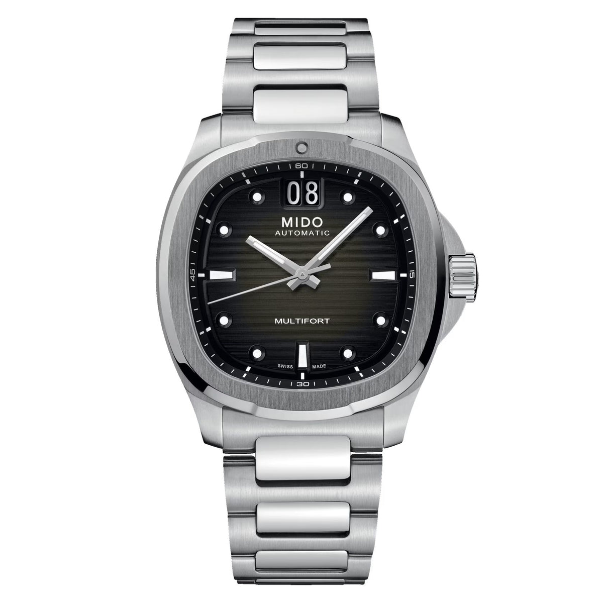 Un brillante ritorno di fiamma! Nata dallo straordinario patrimonio di Mido, la cassa a forma di TV torna al centro della scena per il Multifort TV Big Date, tanto intenso quanto preciso, grazie al suo formidabile movimento meccanico. Il design moderno e dinamico di questo orologio svizzero è sottolineato da un quadrante spazzolato orizzontale di grande impatto e dalla sua funzione distintiva: la scritta BIG DATE a ore 12. Il suo formidabile movimento automatico di ultima generazione, il Calibro 80, è dotato di una spirale high-tech in Nivachron™ che offre un'eccezionale resistenza agli urti e ai campi magnetici.