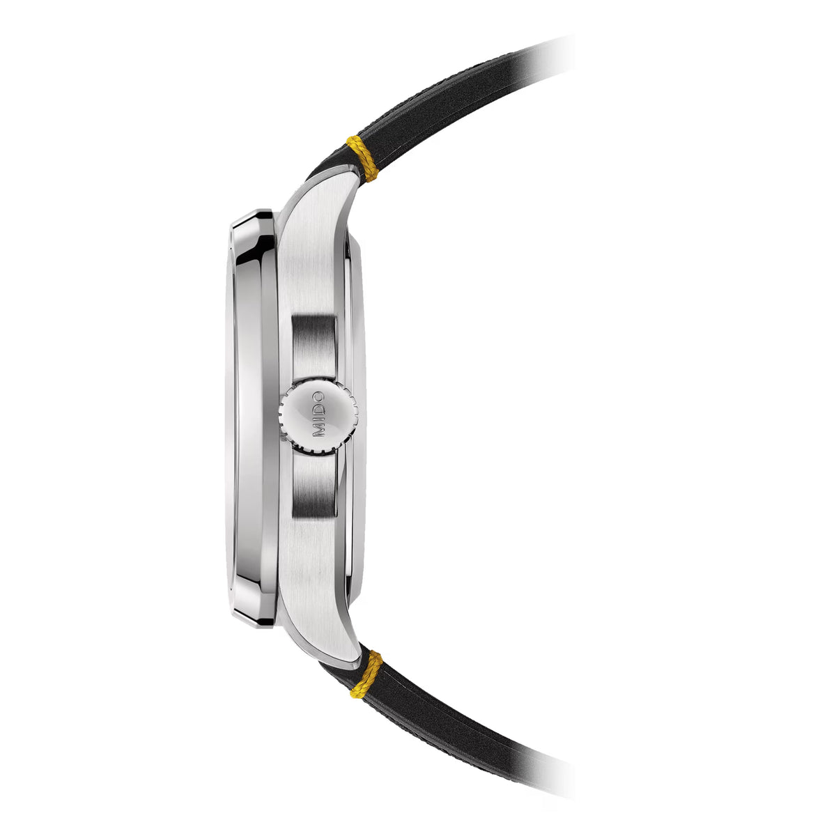 Un brillante ritorno di fiamma! Nata dallo straordinario patrimonio di Mido, la cassa a forma di TV torna al centro della scena per il Multifort TV Big Date, tanto intenso quanto preciso, grazie al suo formidabile movimento meccanico. Il design moderno e dinamico di questo orologio svizzero è sottolineato da un quadrante spazzolato orizzontale di grande impatto e dalla sua funzione distintiva: la scritta BIG DATE a ore 12. Il suo formidabile movimento automatico di ultima generazione, il Calibro 80, è dotato di una spirale high-tech in Nivachron™ che offre un'eccezionale resistenza agli urti e ai campi magnetici.