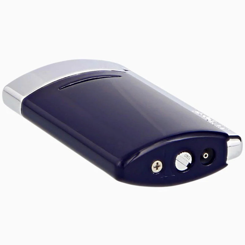 Accendino Unisex della marca Dupont, il colore dello smalto è blu su base in acciaio lucido, l'accensione avviene attraverso l'apposito tasto laterale a pompa, la fiamma è ad effetto fiamma ossidrica alla quale è possibile regolare la potenza di fuoco grazie all'aposita vite. Le dimensioni sono 33 x 54,5 x 12,5 mm. Il peso è di 50 g.