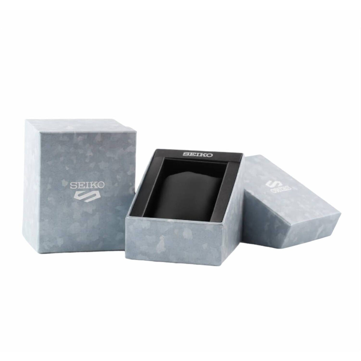 Questo orologio Seiko ha una cassa in acciaio inox con un diametro di 43 mm ed è dotato di un cinturino in Metallo. All'interno ha un movimento  per orologi di qualità ed è finito con un vetro di tipo Hardlex Crystal. L'orologio è impermeabile a 10ATM. Questo significa che l'orologio è adatto al nuoto.