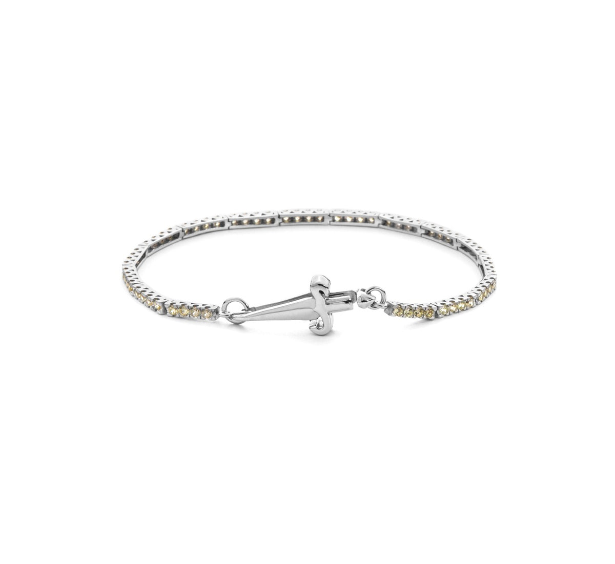 Bracciale Da Uomo Di Cesare Paciotti Della Collezione San Valentino. Bracciale In Argento E Zirconi Gialli Con Chiusura a forma di spadino a molletta. Misura: 19 Cm.
