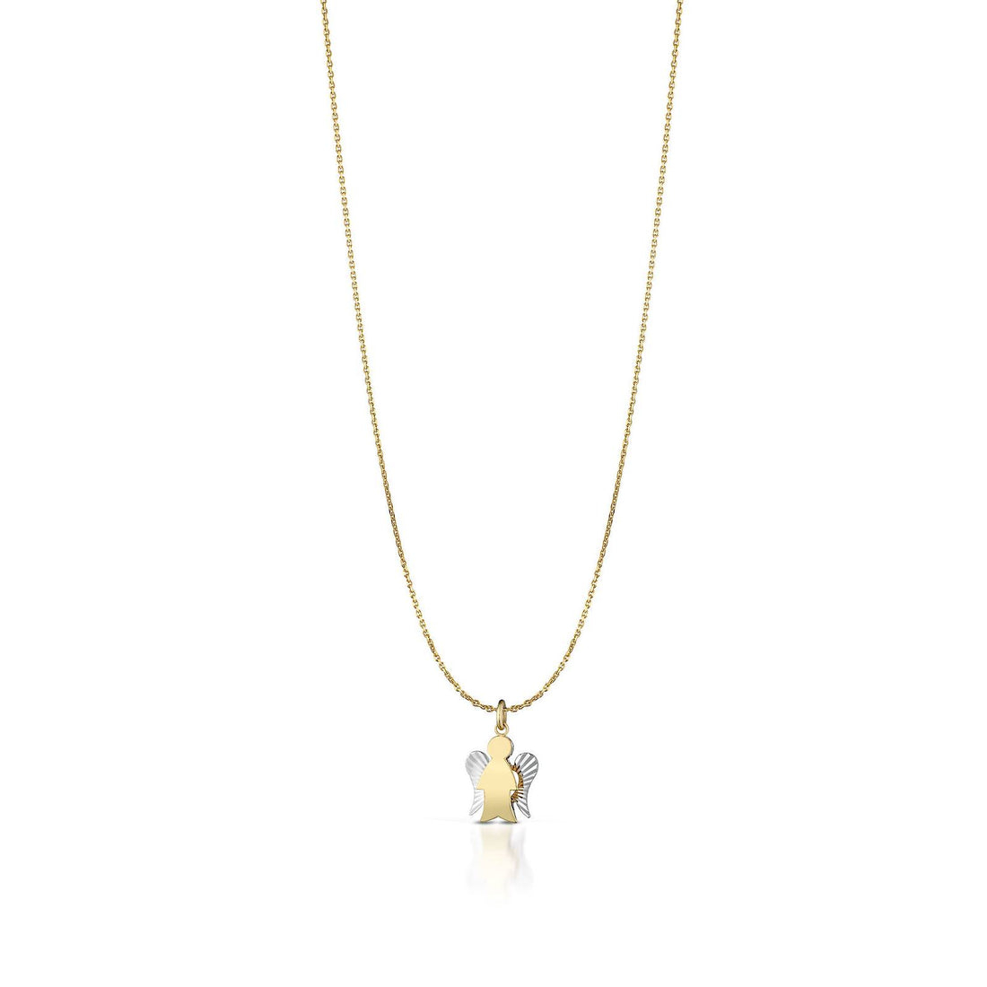 Collana realizzata con catena in oro giallo 375‰ ed Angelo pendente in oro giallo 375‰ con ali in oro bianco 375‰.