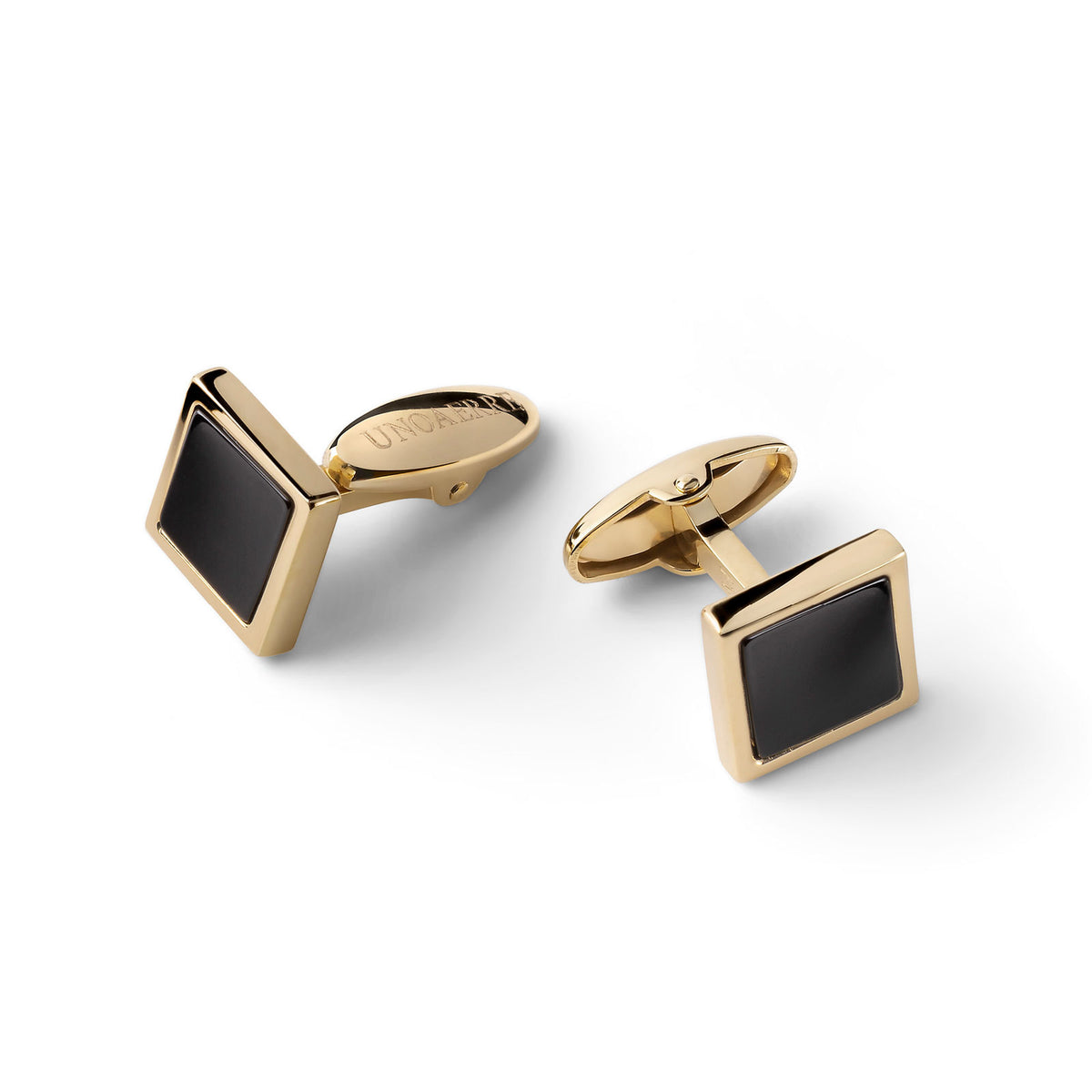 Gemelli Uomo Unoaerre Argento Dorato 925 Quadrato Onice Nero 6602