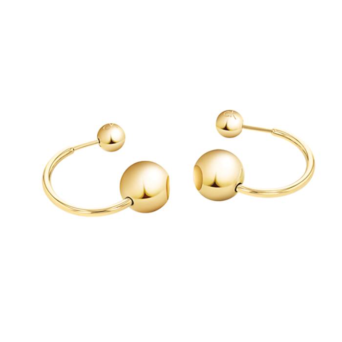 Orecchini da Donna del brand Calvin Klein. Gli orecchini sono realizzati in argento e presentano una forma semicerchio, con perle logate come chiusura.