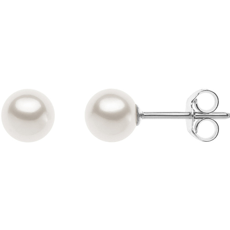 Orecchini da donna della marca Mikiko. Lo spessore della perla è 7-7,5  mm di circonferenza. Il fustello con la vitarella sono in oro 9 kt.