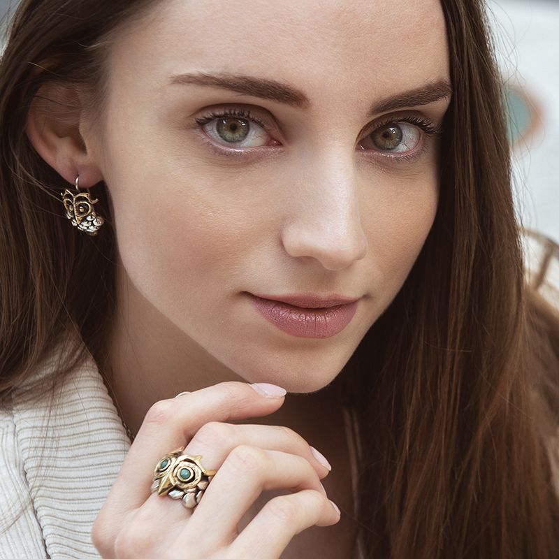 Orecchini da Donna della marca Nemoris modello Hypno. Il gioiello è realizzato in Argento Bianco 925 e Bronzo Rosè, raffigura una civetta dormiente porta fortuna. Il simbolo scaramantico è fatto a mano da esperti artigiani partenopei, infatti molte parti sono brunite per andare ad evidenziare l'artigianalità. L'altezza di è 3,5 cm, la chiusura è con gancio lungo a passare.