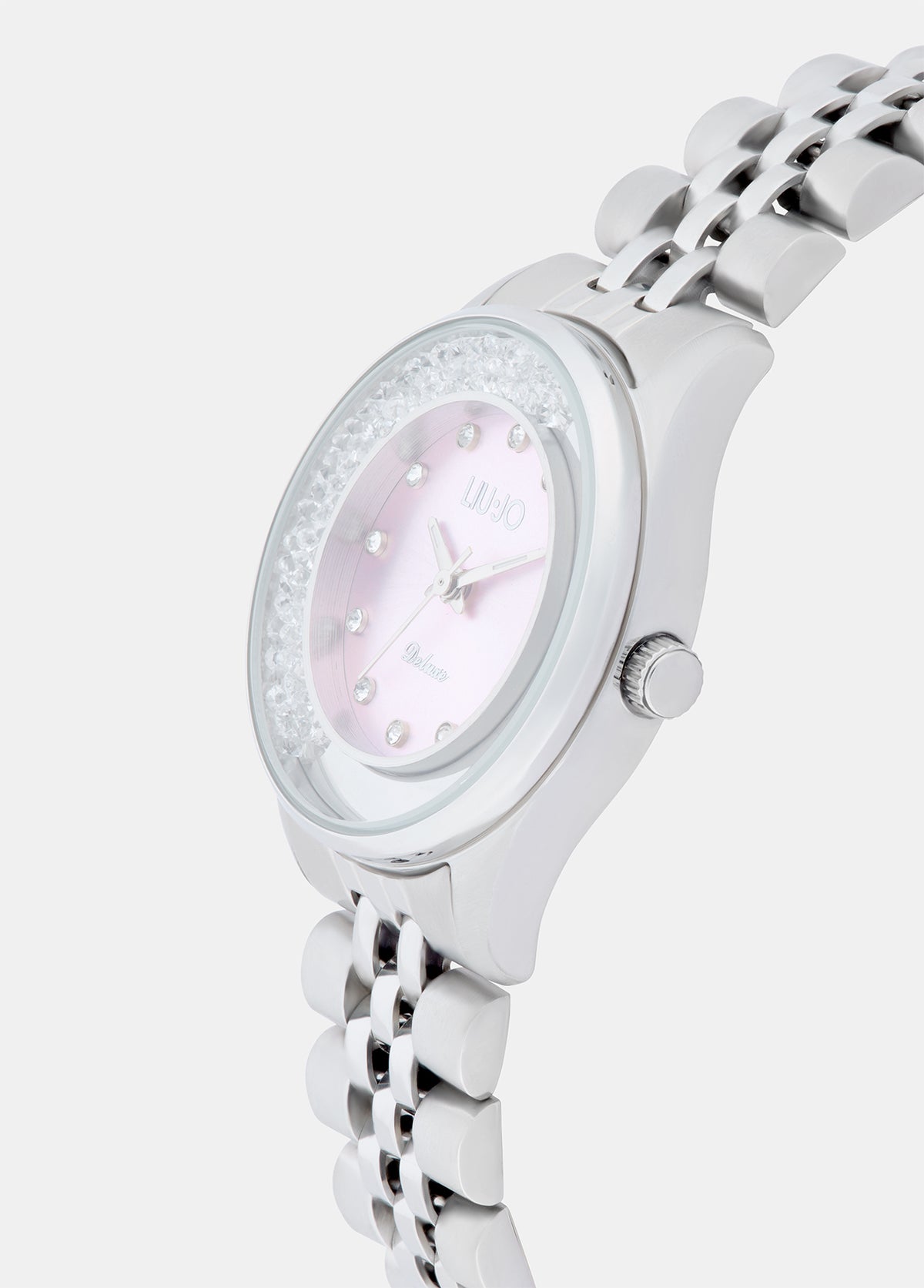 Orologio Solo Tempo Da Donna Di Liu Jo Della Collezione Mini Dancing Slim. Orologio Con Cassa In Acciaio Inossidabile Di Colore Silver Del Diametro Di 30 Mm E Quadrante Di Colore Rosa. Cinturino In Acciaio Inossidabile Di Colore Silver. Vetro: Minerale, Pietre: Esclusivi Cristalli Mobili Sul Castone. La Resistenza All'Acqua È Di 3 Atm E Il Movimento È Miyota Cal.