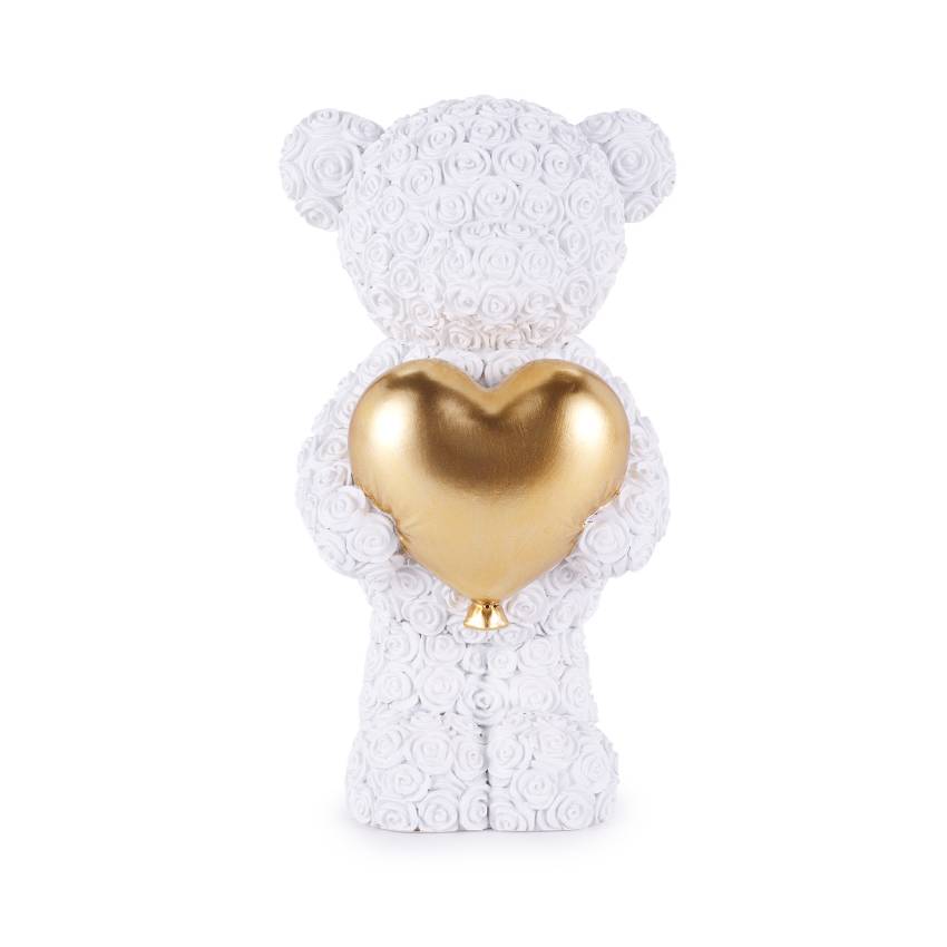 Scultura del brand Henriette. Scultura orsetto con cuore in resina. Miusre 9x16.