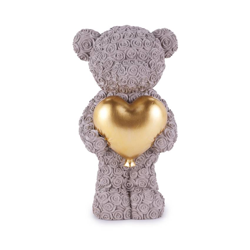 Scultura del brand Henriette. Scultura orsetto con cuore in resina. Miusre 9x16.