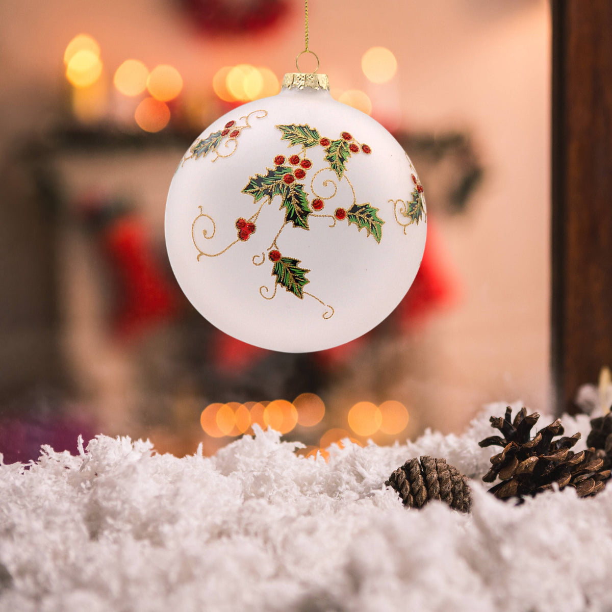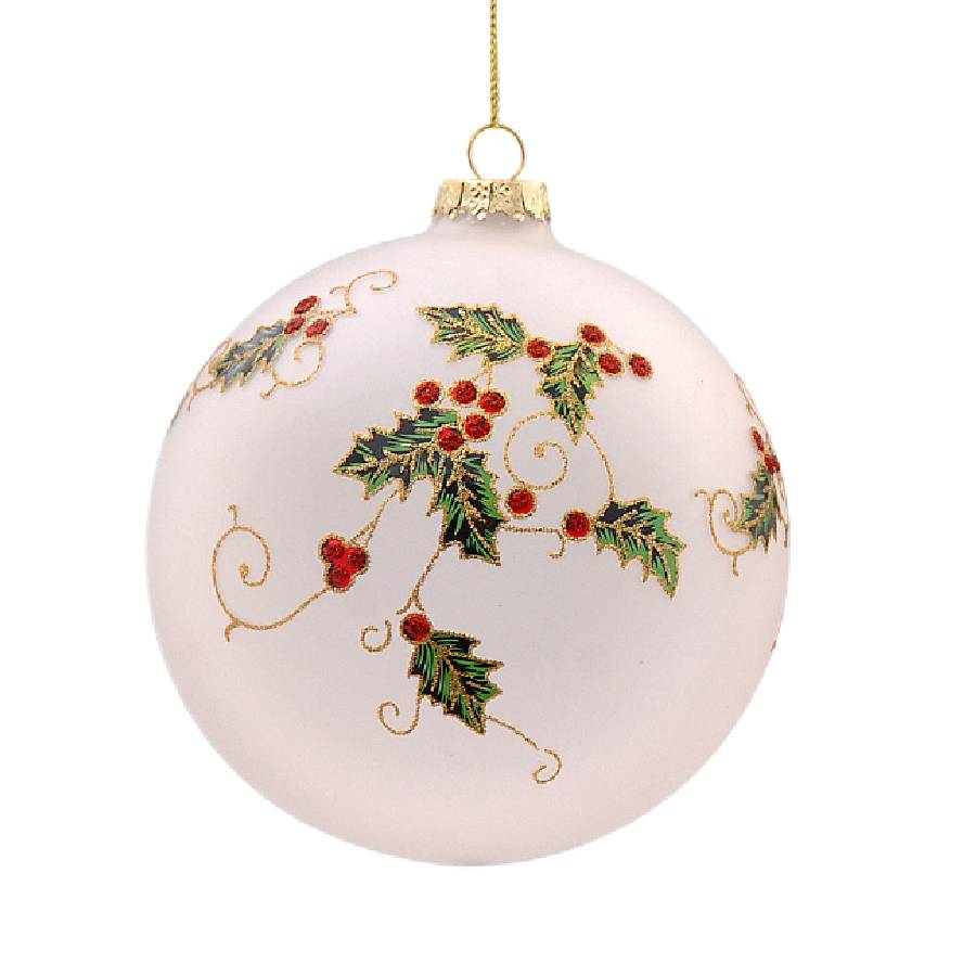 Questa bellissima decorazione saprà impreziosire la vostra casa nelle festività natalizie. I dettagli sono fantastici. La pallina è realizzata in vetro trasparente, con dettagli in verde. L'altezza totale è di 10 cm.